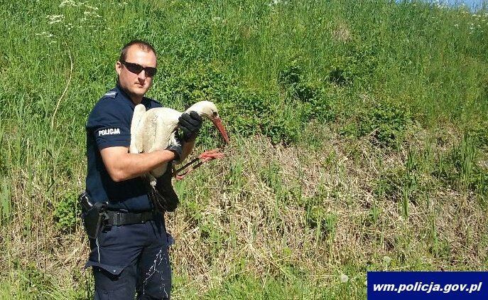 Gdyby nie skuteczna interwencja policjantów nie wiadomo jak długo trwałoby cierpienie bociana.