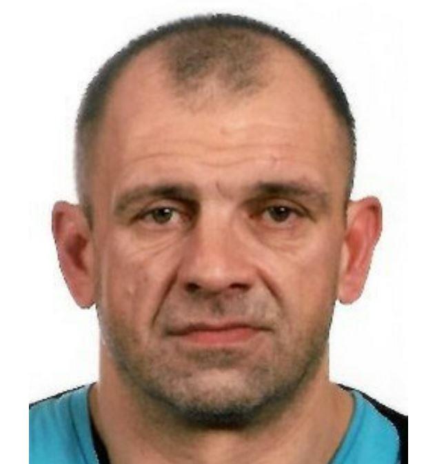 Rysopis: wzrost około 175 cm, sylwetka wysportowana, włosy krótkie – brązowe/szpakowate, waga około 80/90 kg., oczy koloru brązowego, widoczne braki w uzębieniu. Mężczyzna posiada znaki szczególne: tatuaże na ramieniu.