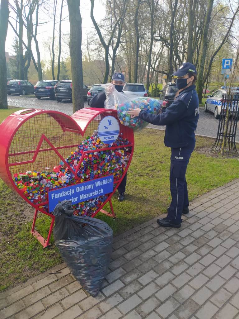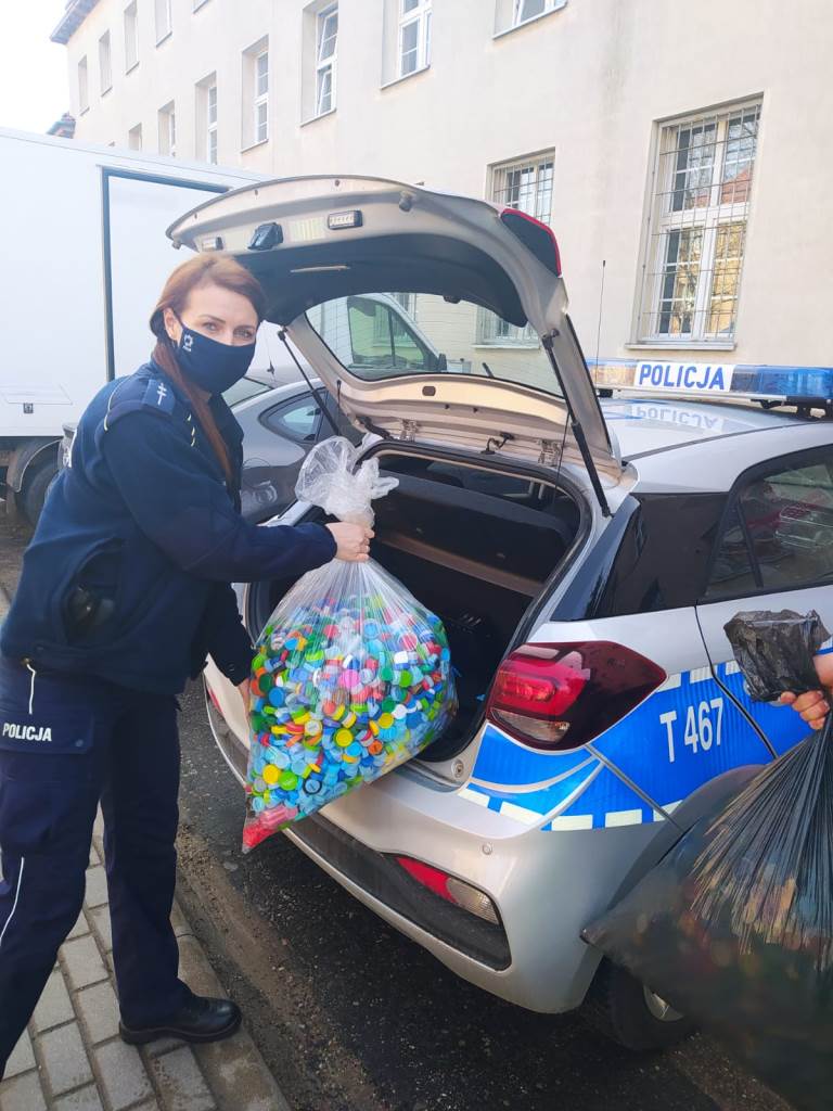 Do akcji włączyli się także funkcjonariusze i pracownicy z KPP w Giżycku, PP w Rynie jak i PP w Wydminach. Dziś kilka worków z nakrętkami zostało przekazanych właśnie na ten cel.