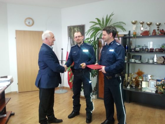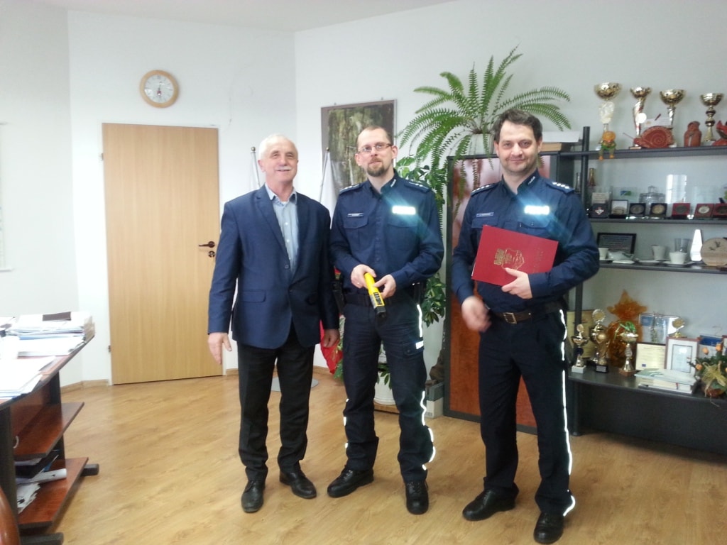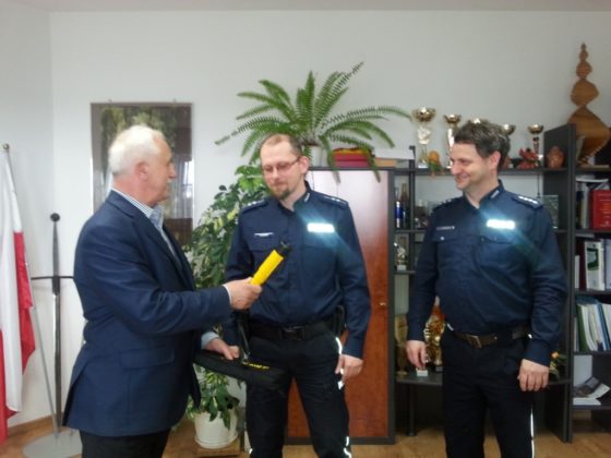 Dzisiaj, 6 kwietnia Naczelnik Wydziału Prewencji i Ruchu Drogowego asp. szt. Jacek Tarnacki oraz Kierownik Posterunku Policji w Rynie asp. Marcin Szczesny odebrali z rąk Burmistrza Miasta i Gminy Ryn Józefa Karpińskiego urządzenie do badania stanu trzeźwości „AlcoBlow”.