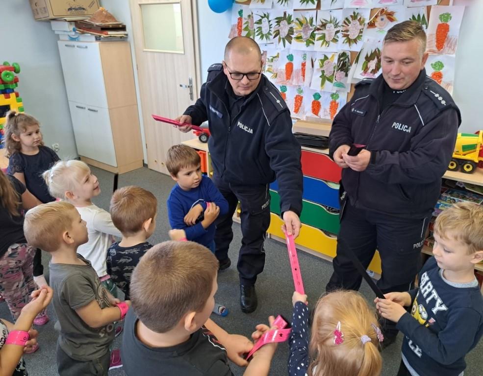 Spotkania z funkcjonariuszami mają za zadanie uświadomić uczniom, jak ważne jest podnoszenie wiedzy odnośnie bezpieczeństwa. Po prelekcjach funkcjonariusze wręczali najmłodszym dzieciom odblaski w ramach akcji ,,Świeć przykładem” i ,,Bądź widoczny na drodze”