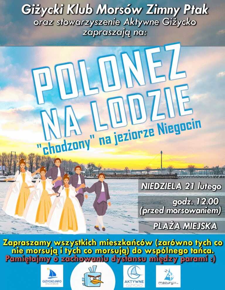 Polonez na lodzie „chodzony” na jeziorze Niegocin 17 lutego 20210Giżycki Klub Morsów „Zimny Ptak” zaprasza wszystkich (nie tylko morsy) do poloneza na zamarzniętym Niegocinie. Niedziele, godzina 12.00 (przed morsowaniem) – plaża miejska!