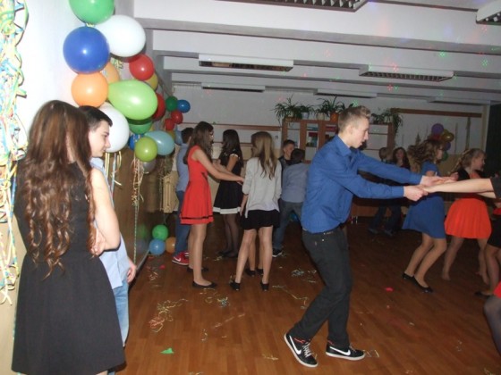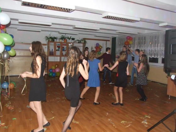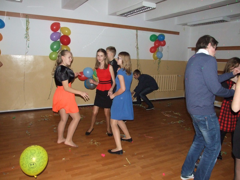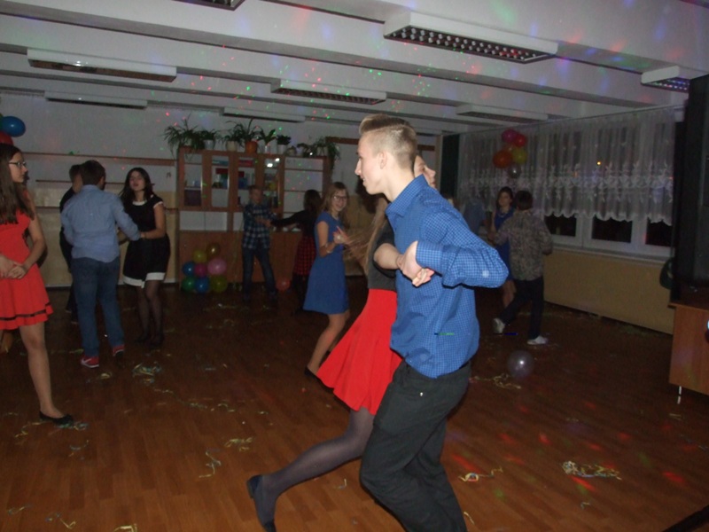 Dzień 22 stycznia 2016 r. dla uczniów klas II Publicznego Gimnazjum im. Szarych Szeregów w Wilkasach był inny niż zwykle. Otóż tego dnia odbyły się POŁOWINKI’2016. Impreza rozpoczęła się o godz. 18.00 i trwała do godz. 23.00. Za miejsce do tańca posłużyła nam sala nr 3, jednak dzięki grupce uczniów zmieniła się i nie wyglądała jak nasza matematyczna pracownia. Zapełniły ją kolorowe balony i serpentyny, co dodało imprezowego nastroju. Przez cały czas, roztańczonym gimnazjalistom towarzyszył DJ. Już od pierwszej piosenki parkiet zapełnił się i ani na chwilę nie stał pusty. Osoby zmęczone tańcem mogły odpocząć, udając się na stołówkę, gdzie przygotowany był poczęstunek. Opiekę nad uczniami sprawowali rodzice oraz nasze wychowawczynie, które bawiły się razem ze swoimi wychowankami. Podczas przerwy – na wykonanie pamiątkowego zdjęcia – klasy wręczyły swoim wychowawczyniom bukiety kwiatów, w podziękowaniu za wspólnie spędzone półtora roku.