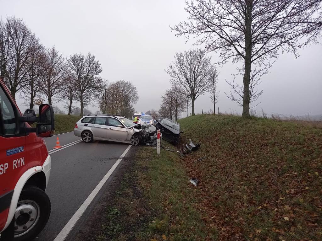 Dzisiaj rano (17.11) o godzinie 06:40 dyżurny giżyckiej komendy został poinformowany o zdarzeniu w m. Canki gm. Ryn. Pracujący na miejscu funkcjonariusze ustalili, że kierujący Fordem 27-letni mieszkaniec Suwałk, jechał w kierunku Olsztyna. Z relacji kierowcy wynika, że poruszał się za nieustalonym pojazdem, który zaczął gwałtownie hamować. Chcąc uniknąć najechania na tył pojazdu, zjechał na przeciwległy pas ruchu i zderzył się czołowo z jadącym z naprzeciwka BMW.