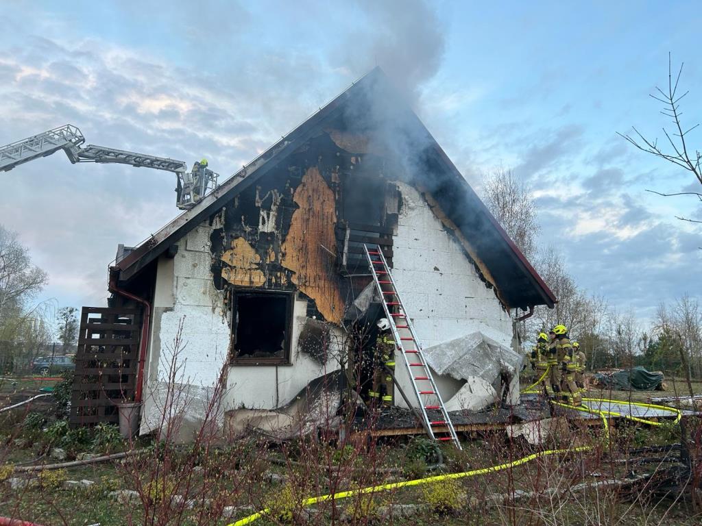 W chwili przybycia zastępów strażacy zastali rozwinięty pożar budynku, a ogień wydobywał się ponad konstrukcję dachu. W trakcie działań ustalono, że mieszkańcy ewakuowali się samodzielnie przed przybyciem zastępów PSP i OSP.
