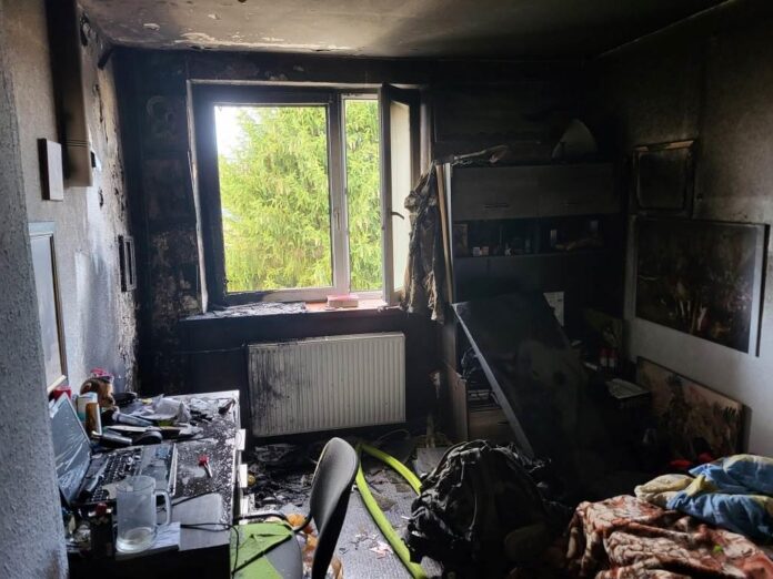 – Aby dostać się do środka strażacy użyli narzędzi hydraulicznych w celu wyważenia drzwi i dotarcia do ogniska pożaru. Po przeszukaniu pomieszczeń wykluczono obecność osób poszkodowanych i przystąpiono do usunięcia tlących się przedmiotów – mówi st. kpt. Mateusz Pupek, oficer prasowy Komendanta Powiatowego PSP w Giżycku.