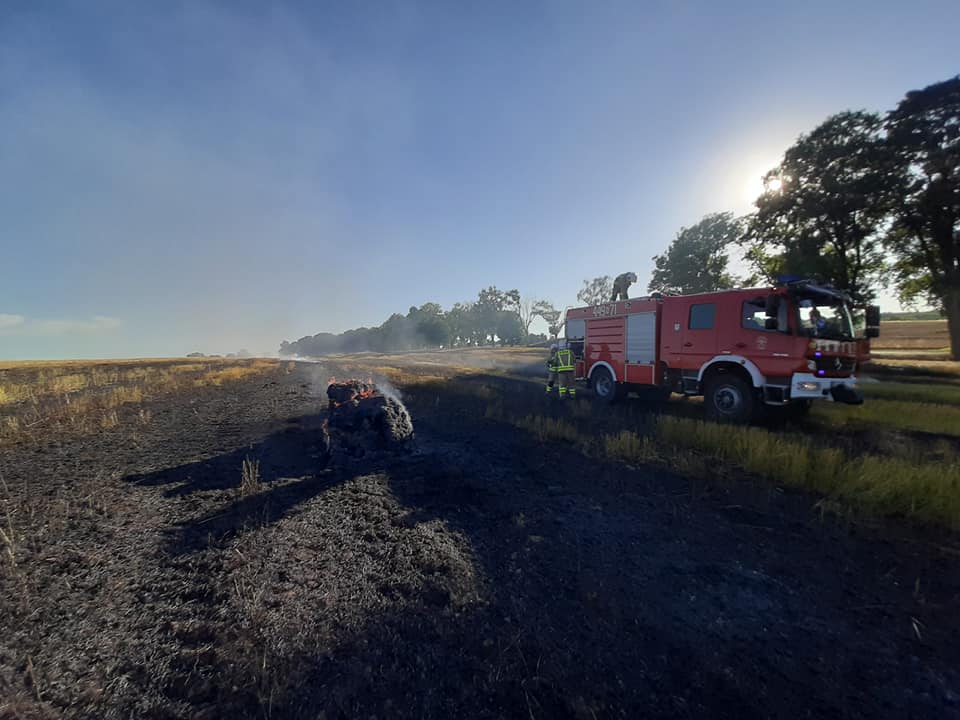Do pierwszego pożaru doszło w miejscowości Ryn. Paliły się bele słomy oraz ściernisko. W akcji gaśniczej udział brały zastępy OSP Spytkowo, OSP Kruklanki, OSP Miłki, PSP Giżycko, OSP Użranki, OSP Mikołajki, OSP Ryn, OSP Jeziorowskie.