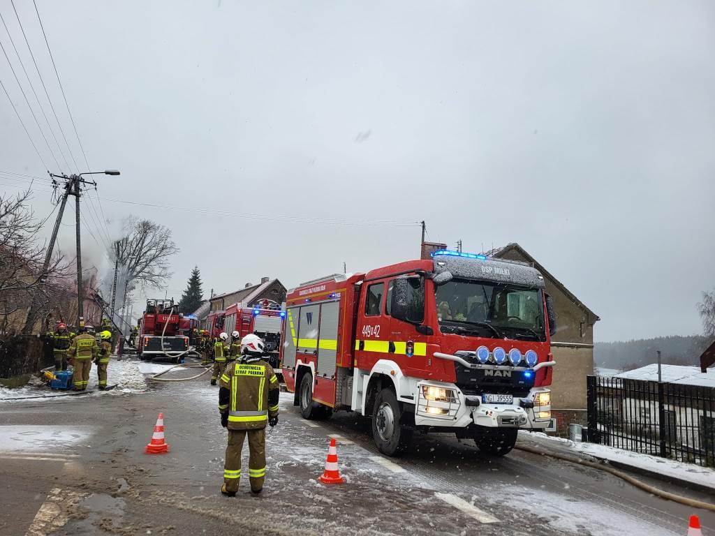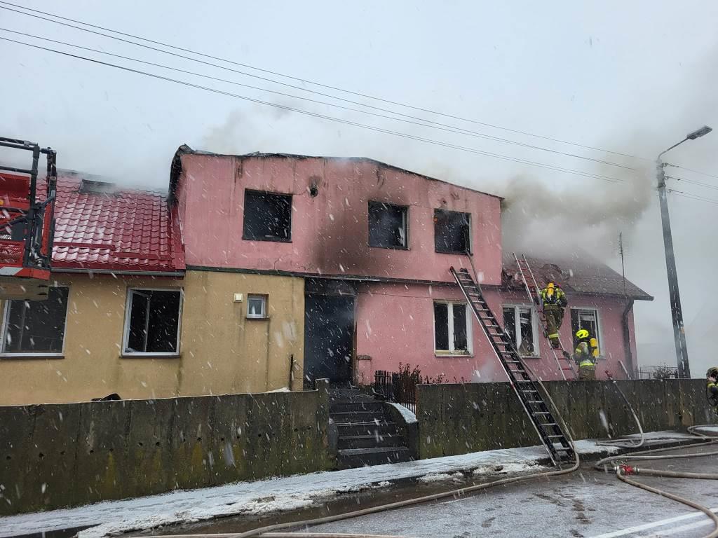 – W wyniku rozpoznania ustalono, że wszyscy mieszkańcy ewakuowali się samodzielnie przed przybyciem zastępów PSP i OSP. Pożarem objęta była część parterowa domu wraz z korytarzem. Ogień sprytnie przedostał się schodami na poddasze, przez co rozprzestrzenił się na lokale mieszkalne na piętrze. Działania Straży Pożarnej były utrudnione ze względu na wietrzną pogodę. W czasie działań ratownicy wynieśli z pomieszczeń objętych pożarem trzy butle z gazem propan-butan. Pożar został ugaszony. Działania gaśnicze trwały ponad 7 godzin – przekazują strażacy z KPPSP Giżycko.