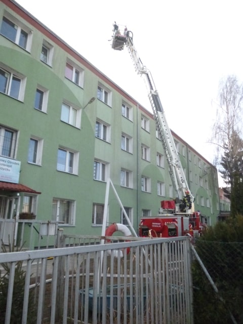 W dniu 27.02.2019 ok. godz. 9:00 Dyżurny Stanowiska Kierowania Komendanta Powiatowego w Giżycku otrzymał zgłoszenie o pożarze w Miejskim Ośrodku Socjoterapii w Giżycku. Według zgłaszającego pożar powstał i rozprzestrzenia się na 2 piętrze, a silne zadymienie uniemożliwiło ewakuację jednego z pracowników ośrodka.