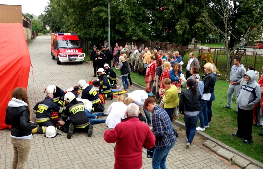 W jednym z budynków na terenie szpitala w Giżycku wybucha pożar. Ogień pojawia się na dolnych kondygnacjach budynku, płonął pomieszczenia. Są ranni i potrzebna jest natychmiastowa pomoc. Na szczęście to tylko scenariusz ćwiczeń służb ratunkowych z Giżycka, jakie zostały zorganizowane przez funkcjonariuszy Państwowej Straży Pożarnej w Giżycku.