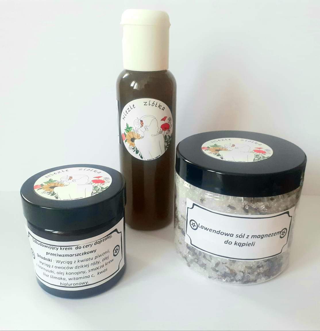 Naturalne kosmetyki o intensywnym zapachu i leczniczym działaniu to unikatowe receptury odpowiednio ze sobą połączonych ziołowych ekstraktów. Zawierają ekologiczne oleje, które same tłoczymy, wysoko skoncentrowane olejki eteryczne, nowoczesne składniki aktywne oraz witaminy. Większość ziół stosowanych do produkcji kosmetyków pochodzi z mazurskich łąk, zbieranych daleko od dróg. Zioła w większości pozyskujemy same, zbierając je na dziko. Wszystkie zioła suszone są w tradycyjny sposób. Po zbiorze są ręcznie przebierane i umieszczane na siatkach w przewiewnych pomieszczeniach.