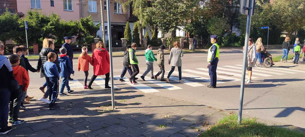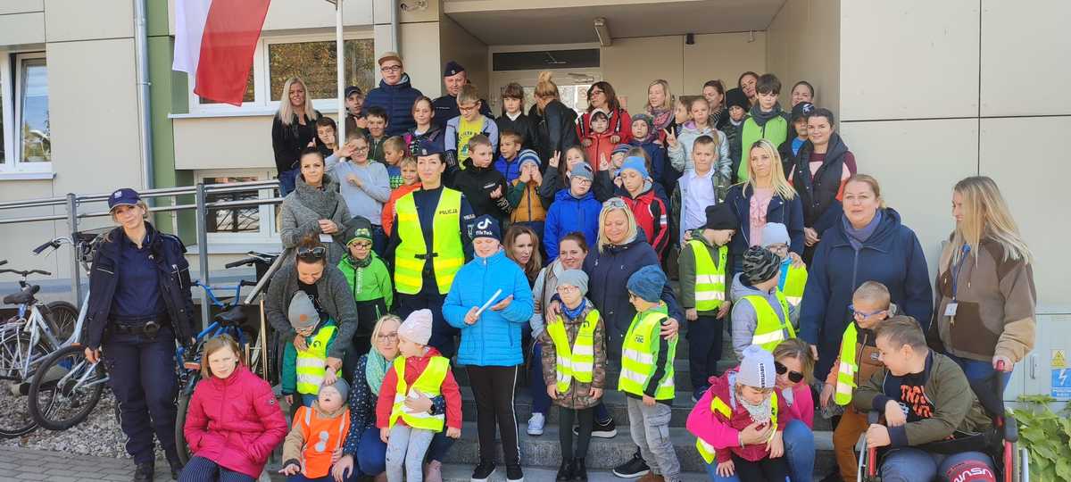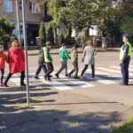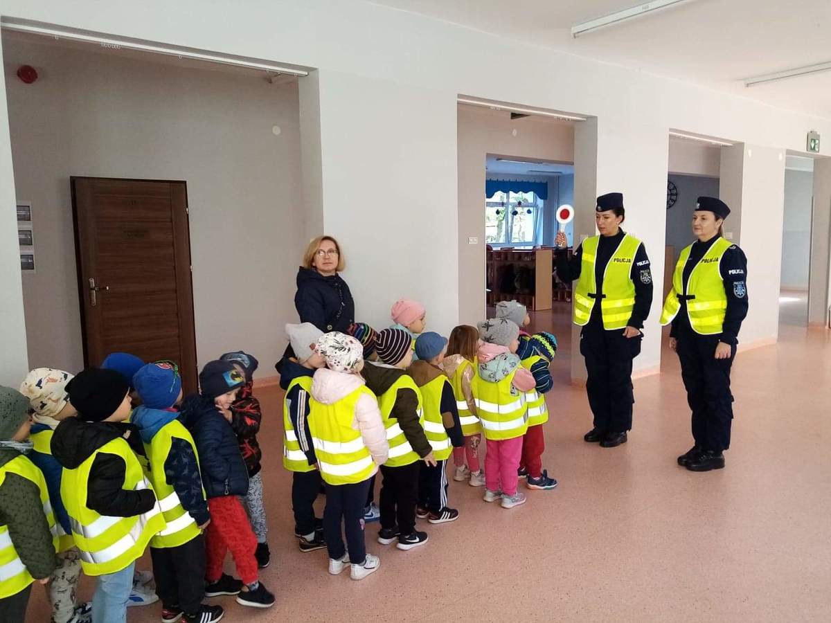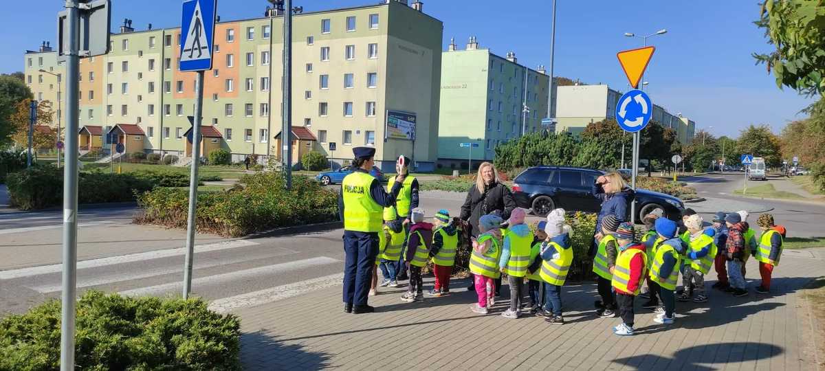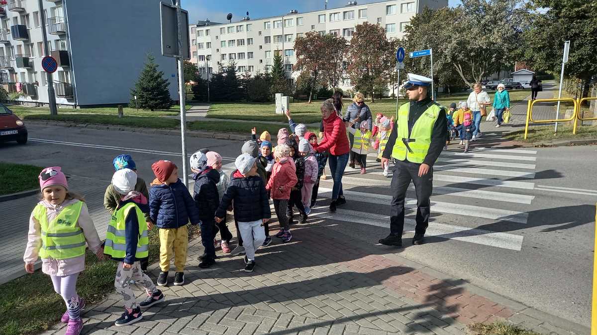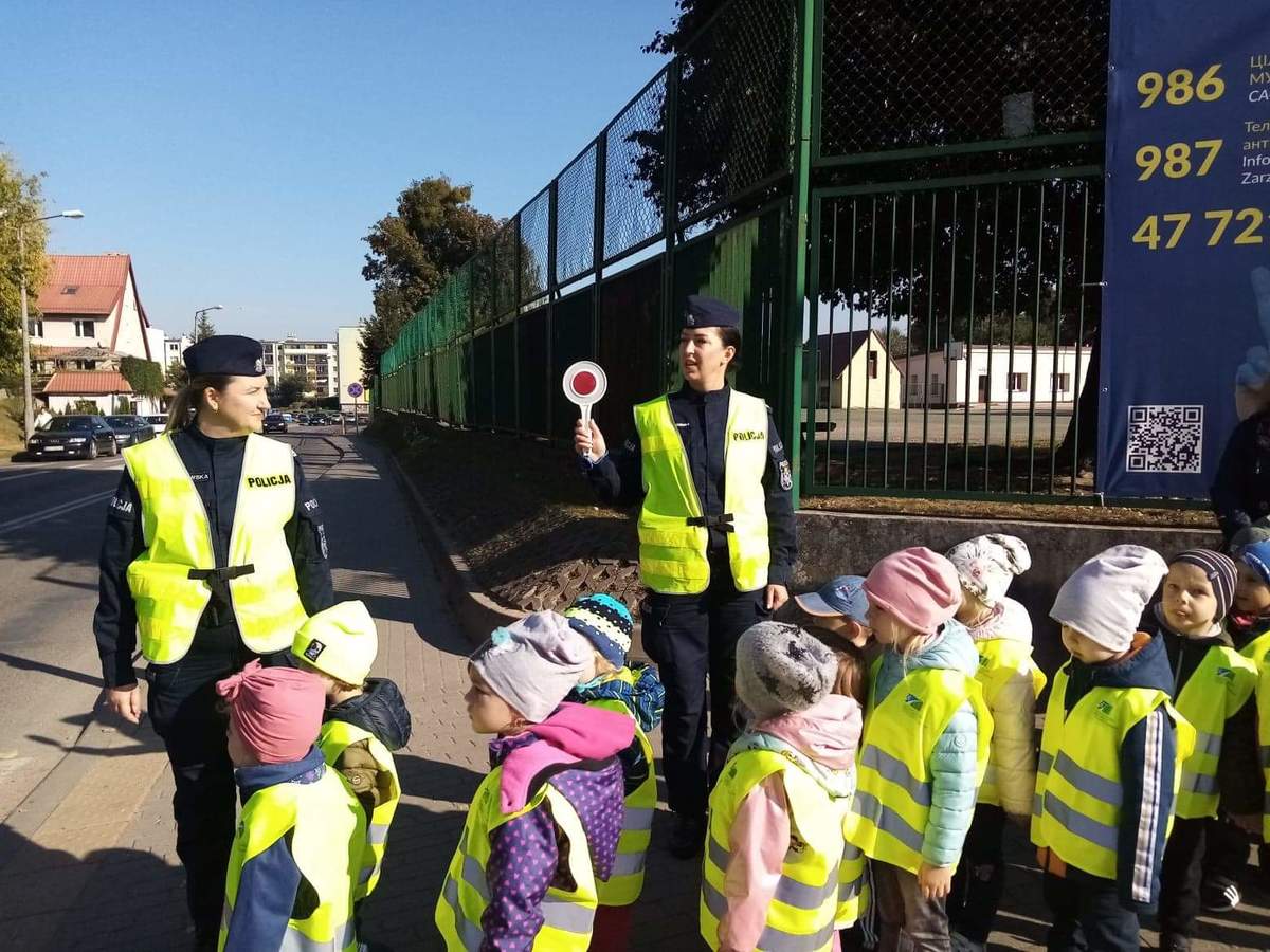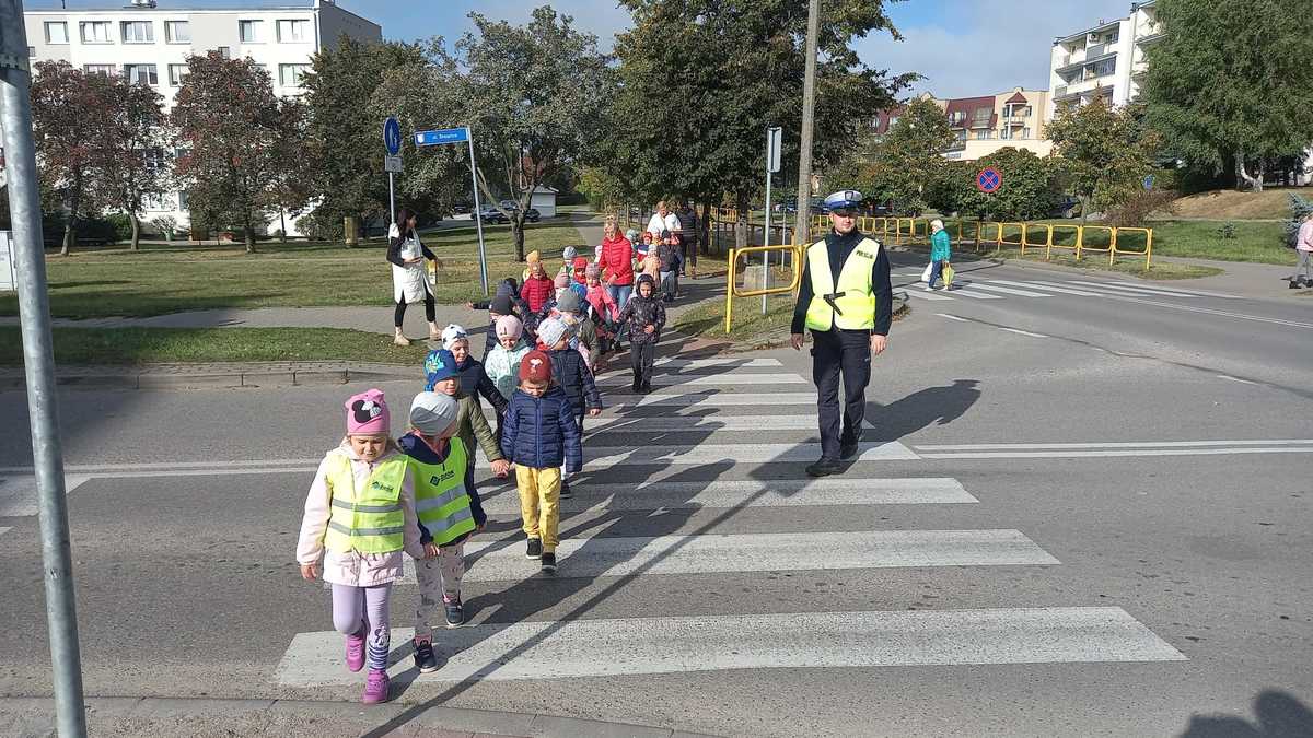 Policjanci z giżyckiej komendy spotkali się z najmłodszymi uczestnikami ruchu drogowego. Mundurowi nie tylko opowiadali o bezpiecznych zachowaniach, ale też pokazali w terenie jak bezpiecznie przechodzić przez drogę.