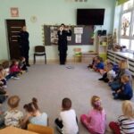 W podziękowaniu za ciekawe spotkania policjanci otrzymali od dzieci własnoręcznie zrobione laurki z życzeniami i podziękowaniami oraz upamiętnili odwiedziny wspólnymi zdjęciami.
