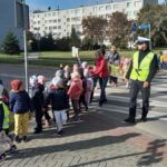 Lekcje były o tyle cenne, gdyż odbyły się w praktyce. Funkcjonariusze zabrali dzieci w rejon przejść dla pieszych, gdzie pod czułym okiem policjantów, mogli wykorzystać wskazówki dotyczące bezpiecznego przechodzenia przez jezdnię. Przy okazji mundurowi przypominali też o ważnej roli odblasków, które zwiększają bezpieczeństwo pieszego na drodze. Na zakończenie spotkania policjanci pokazali milusińskim policyjny radiowóz, za którego kierownicą mógł wsiąść każdy uczestnik spotkania i wykonać sobie pamiątkowe zdjęcie. Dzieci obejrzały też sprzęt wykorzystywany przez policjantów w codziennej służbie.