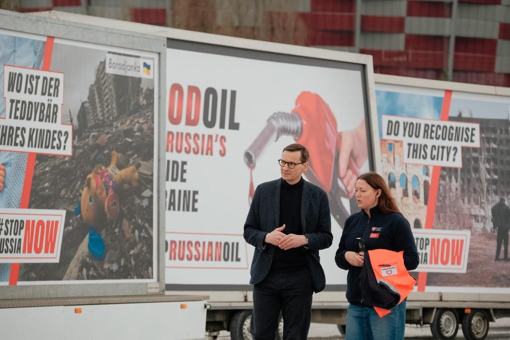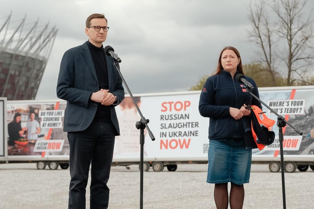 „Rozpoczynamy specjalną akcję billboardową #StopRussiaNow, która ma budzić sumienia” – podkreślił premier Mateusz Morawiecki. „To, co się dzieje na ulicach ukraińskich miast, wstrząsa naszym sumieniem, ale zbyt krótko. Zbyt szybko nasi partnerzy w Europie Zachodniej i Południowej chcieliby wrócić w koleiny normalności” – wyjaśnił.