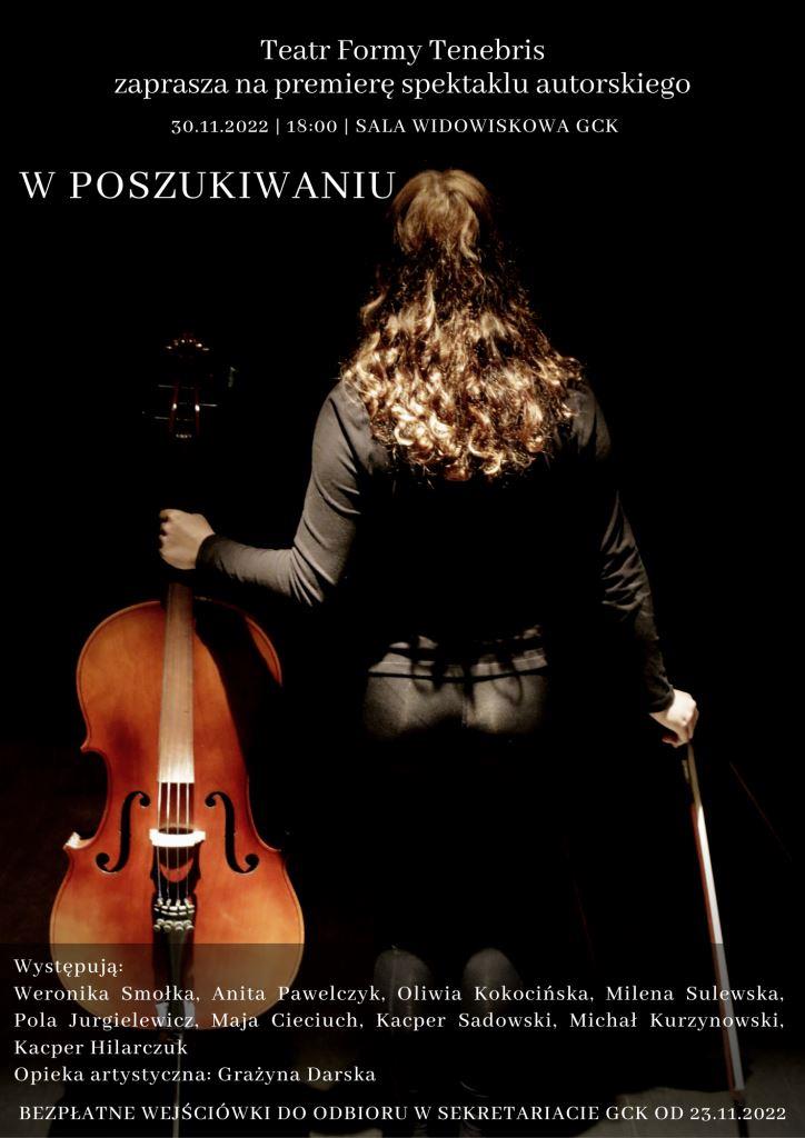 Giżyckie Centrum Kultury oraz Teatr Formy Tenebris zaprasza na premierę spektaklu autorskiego „W poszukiwaniu…”, który odbędzie się 30 listopada o godzinie 18:00 w sali widowiskowej GCK (ul. Konarskiego 8).