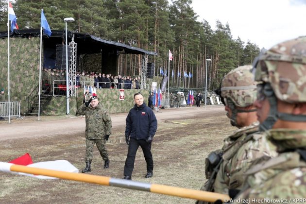 Zwracając się do żołnierzy wielonarodowej, batalionowej grupy bojowej NATO, którzy w marcu przybyli do Polski, prezydent Duda powiedział: „Witam was z całego serca. Jestem przekonany, że służba tutaj, na terenie Polski, na terenie mojego kraju, będzie dla was ciekawym doświadczeniem. Jestem przekonany, że zdobędziecie nowe umiejętności, a także i nowe przyjaźnie. Życzę Wam, by nigdy nie opuszczało Was niezwykle ważne – powiedziałbym: podstawowe – tzw. żołnierskie szczęście” – dodał.