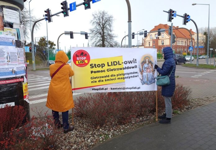 W sobotę, 5 kwietnia, pod sklepem Lidl przy ul. Bohaterów Westerplatte w Giżycku odbyła się pikieta przeciwko planowanej budowie centrum dystrybucyjnego tej sieci w Gietrzwałdzie – miejscowości o wyjątkowym znaczeniu religijnym. Protest był częścią ogólnopolskiej akcji, która odbyła się w wielu miastach w całym kraju.