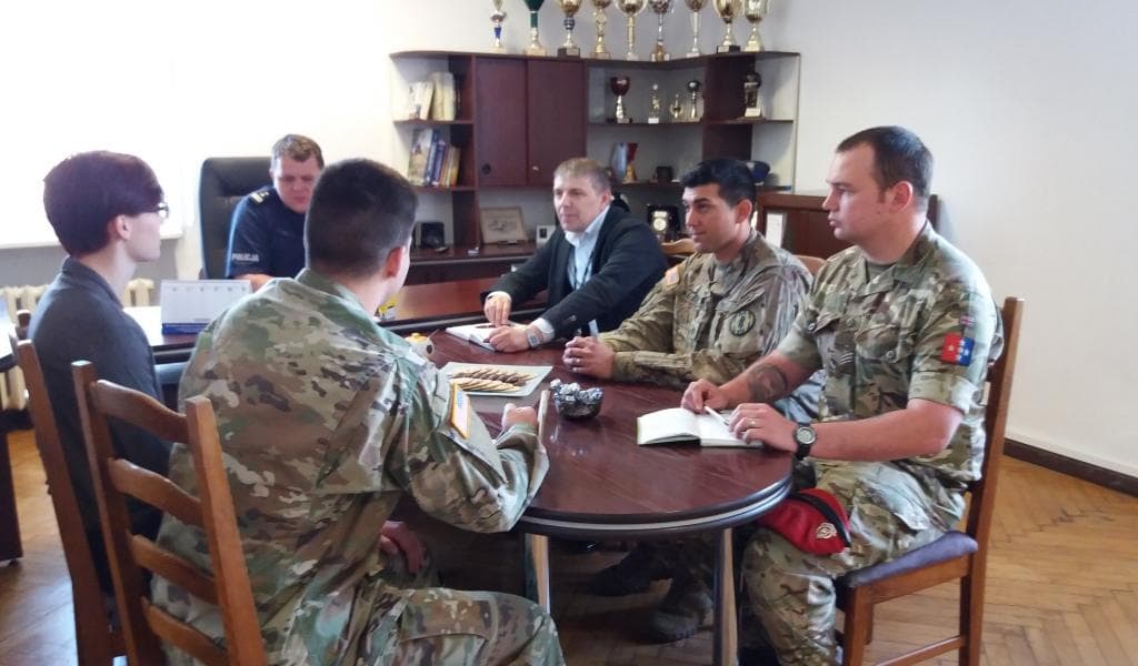 Dzisiaj, 11 maja Komendę Powiatową Policji w Giżycku odwiedzili niecodzienni goście. Przedstawiciele Żandarmerii Wojsk Amerykańskich i Brytyjskich, którzy stacjonują w Bemowie Piskim, spotkali się z Komendantem Powiatowym Policji mł. insp. Przemysławem Rawą oraz jego zastępcą.