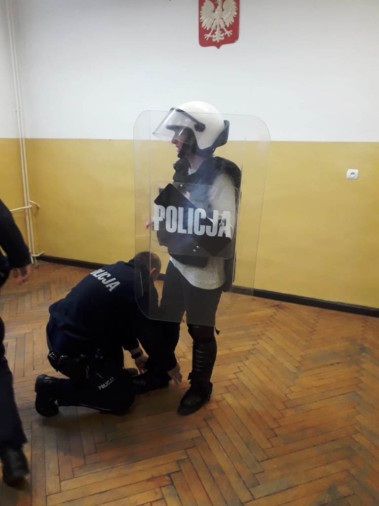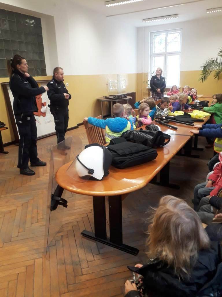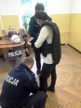 Bardzo dużym zainteresowaniem cieszył się pokaz policyjnego wyposażenia oraz tzw. wyposażenia specjalnego. Każdy chętny mógł przymierzyć kamizelkę kuloodporną lub wziąć do ręki tonfę albo kajdanki. Na koniec policjanci pokazali dzieciom, jak wygląda radiowóz i jak jest wyposażony.