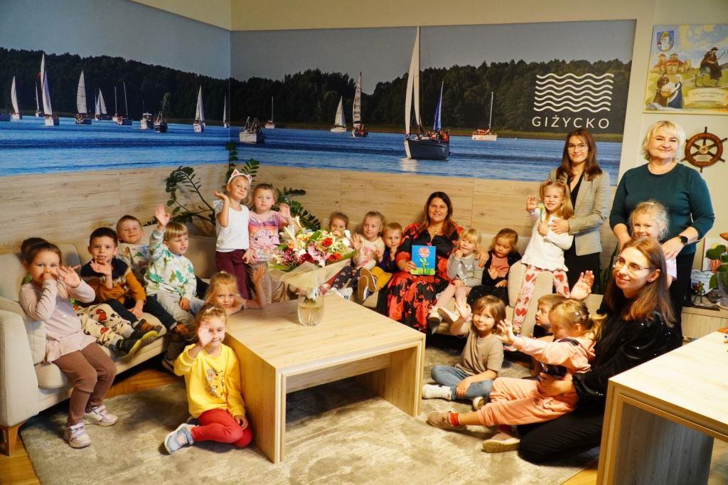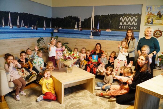 Wszystko to z powodu wyjątkowej wizyty pięciolatków w Urzędzie Miejskim w Giżycku. Przedszkolaki odwiedziły salę konferencyjną i zasiadły na krzesłach radnych miejskich, gdzie z uwagą obejrzały promocyjny spot Giżycka. Dzieci bez najmniejszego problemu nazywały giżyckie miejsca pojawiające się w filmie.