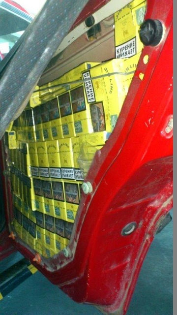 Mundurowi z Placówki Straży Granicznej w Braniewie w trakcie kontroli samochodu osobowego marki Volkswagen Golf znaleźli pochowane papierosy bez obowiązujących znaków skarbowych akcyzy warte ponad 28 000 zł. Ujawnione wyroby tytoniowe pochowane były w specjalnie skonstruowanych skrytkach, m. in, w drzwiach, w desce rozdzielczej pojazdu oraz w podwoziu. Łącznie w tym aucie znajdowało się ponad 44 000 sztuk papierosów.