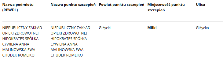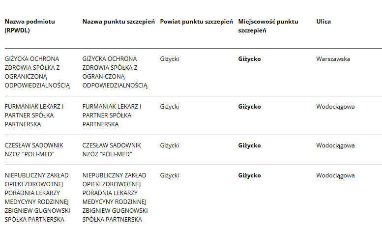Punkty szczepień przeciwko Covid-19 w powiecie giżyckim