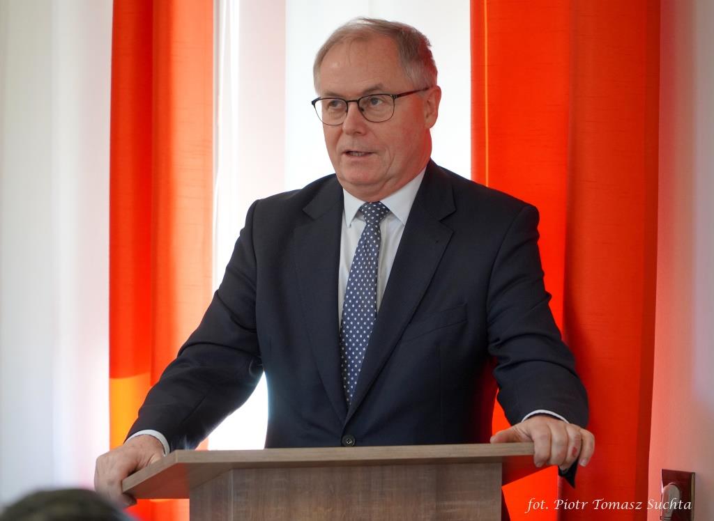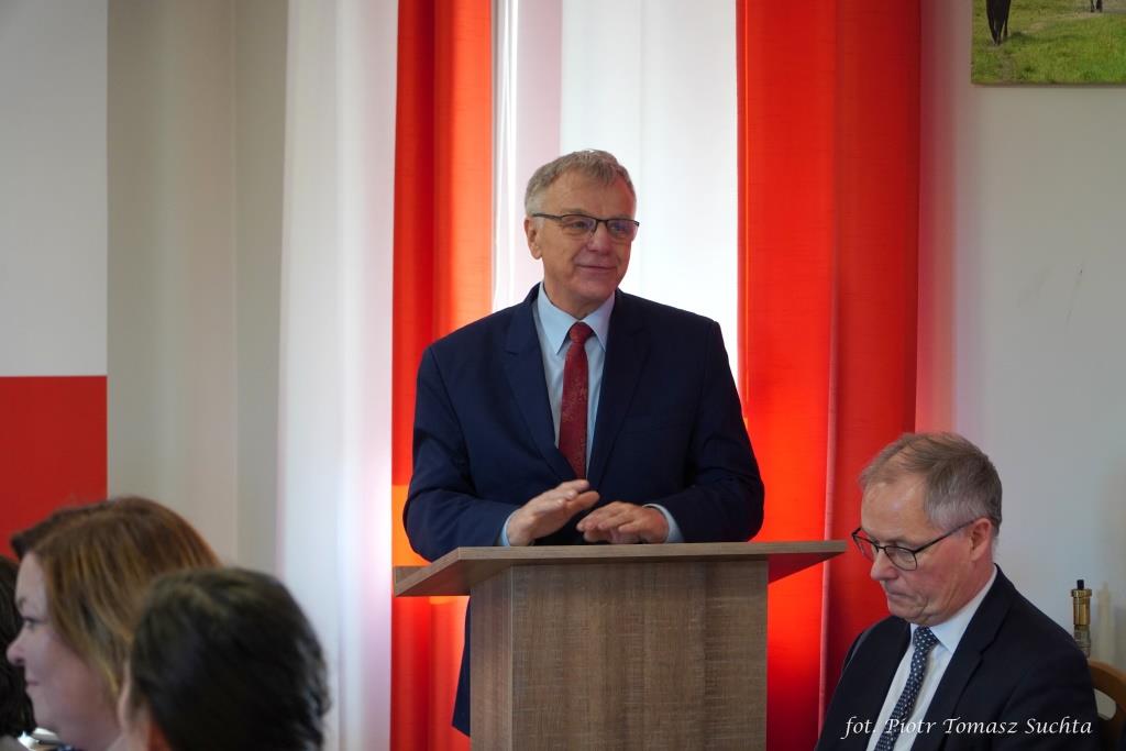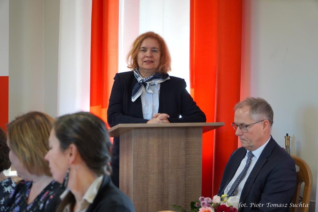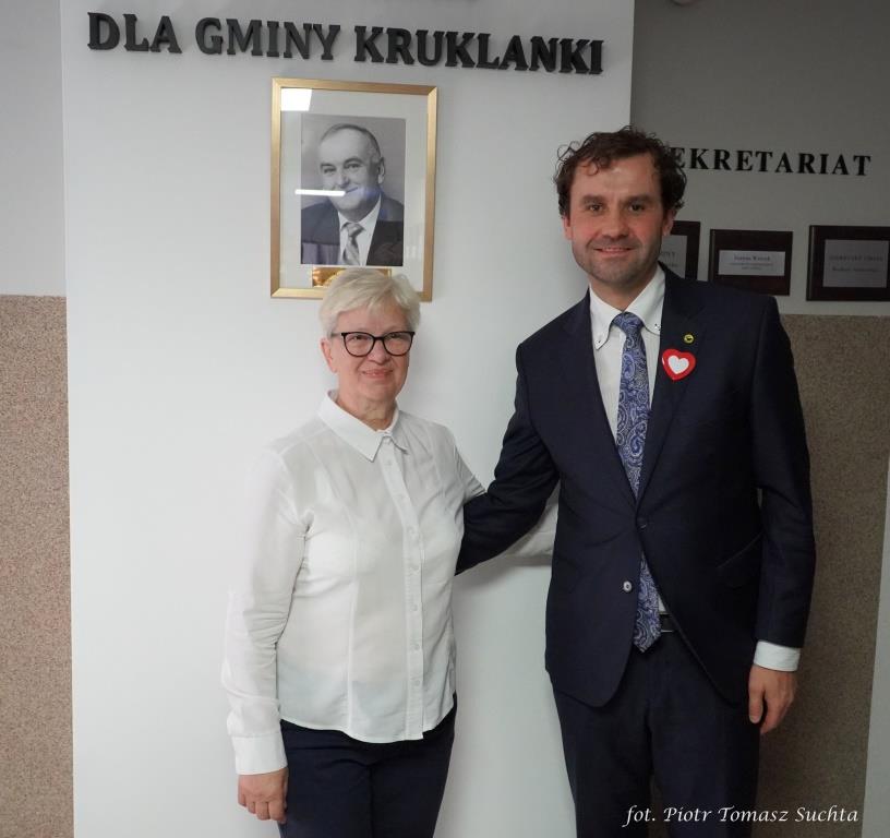 – Pana Wójta Mariana Kwolika znałam osobiście. Kończył on swoją karierę samorządową w latach 2002-2006, a ja swoją dopiero zaczynałam i muszę wspomnieć, że bardzo wiele się od niego nauczyłam. Umiał radzić sobie z różnymi problemami tamtych czasów, inicjował bardzo wiele rzeczy, miał ogromną wiedzę samorządową i przede wszystkim patrzył w przyszłość. Mają tutaj Państwo na ścianie piękne hasło: „Przyszłość zależy od tego, co robimy w teraźniejszości”. Właśnie tak działał śp. Marian Kwolik, to była jego domena, a z drugiej strony był znakomitym kolegą. Człowiekiem pełnym humoru, wesołym i wspierającym dobrą radą tych, którzy dopiero zaczynali swoją pracę. Za to wszystko chciałabym bardzo serdecznie podziękować, za to, że zasłużył się nie tylko dla Gminy Kruklanki, ale również dla całego regionu, ponieważ potrafił patrzeć perspektywicznie.