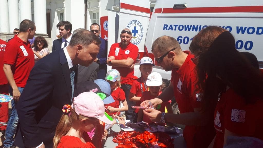 Grupa ratowników reprezentowała Mazurskie Ochotnicze Pogotowie Ratunkowe na pikniku „Bezpieczne Wakacje z Parą Prezydencką”.