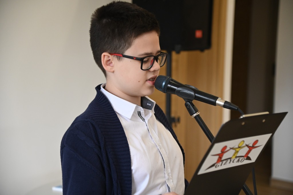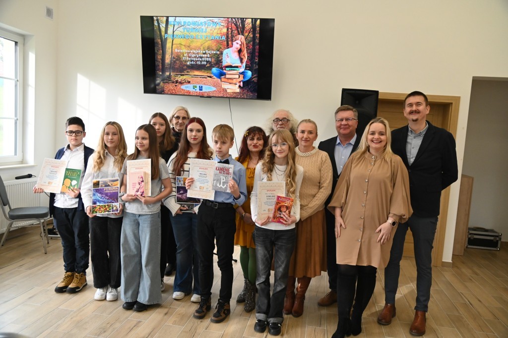 Nagrody książkowe wręczali Marek Jasudowicz i Barbara Sosnowicz, wójt i zastępca wójta Gminy Giżycko oraz Michał Rogowski, dyrektor GOKiR Wilkasy.