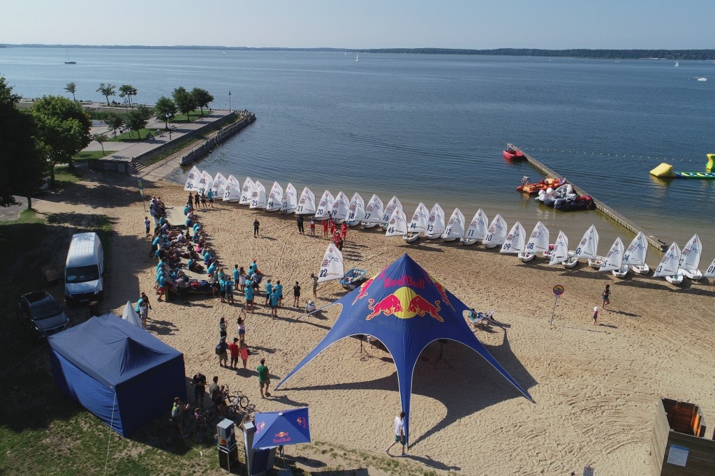 Red Bull Regaty Optymistów to wyjątkowe wydarzenie żeglarskie tylko dla dorosłych. Sternicy i sterniczki rywalizują w jachtach klasy Optimist, czyli w łódkach przeznaczonych dla dzieci i młodzieży do 15 roku życia. W sobotę 21 lipca odbyły się eliminacje. Już jutro 30 najlepszych żeglarzy zmierzy się w wielkim finale. Regaty odbywają się na plaży miejskiej w Giżycku, niedaleko Ekomariny.