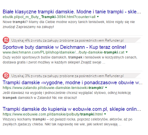 -oznacza w wynikach wyszukiwania Google sklepy podłączone do Refunder, dzięki czemu możemy zdecydować się na wybór tego, który zaoferuje zwrot,
