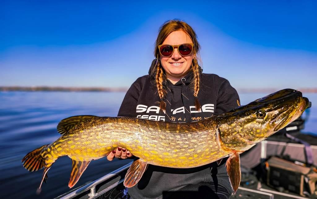 Na zdjęciu rekordowy 114-centymetrowy szczupak ekipy Gołgoł oraz okaz złowiony przez Aleksandrę Frankowską.