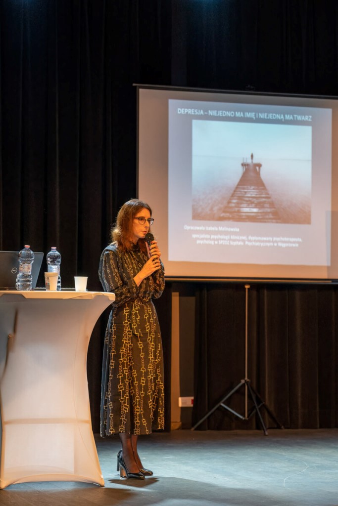 Pani Izabela Malinowska psycholog kliniczny uświadomiła uczestników, że choroby somatyczne mogą przyczynić się do depresji i odwrotnie. Relacje, element, który jest arcyważny dla dobrostanu psychicznego. Doceniany, a może bardziej zauważany w ostatnich latach. O wadze relacji rodzinnych mówiła Pani Paulina Pupiałło- psycholog, psychoterapeuta.