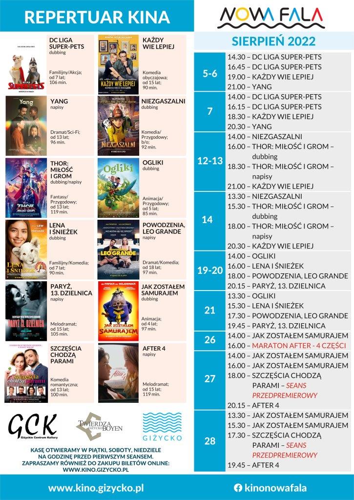 Repertuar kina „Nowa Fala” w Giżycku (12.08-28.08.22)
