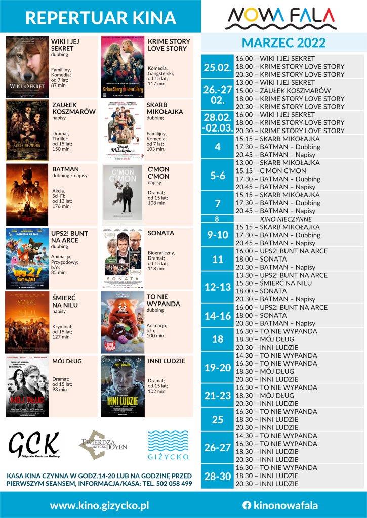 Sprawdź, jakie filmy będzie można obejrzeć w kinie Nowa Fala w Giżycku od 25 lutego 2022 r. do 30 marca 2022 r.