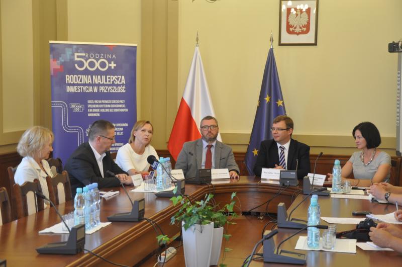 Programowi „Rodzina 500 Plus” była poświęcona konferencja prasowa z udziałem wojewody Artura Chojeckiego, dyrektora Wydziału Polityki Społecznej Marcina Jastrzębskiego, jego z-cy Joanny Jabłonki-Kastrau będącej zarazem pełnomocnikiem wojewody ds. programu oraz Państwa Krystyny i Jana Mejłun, rodziców ośmiorga dzieci z Olsztyna.