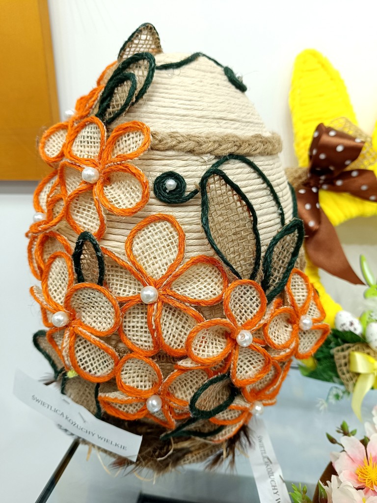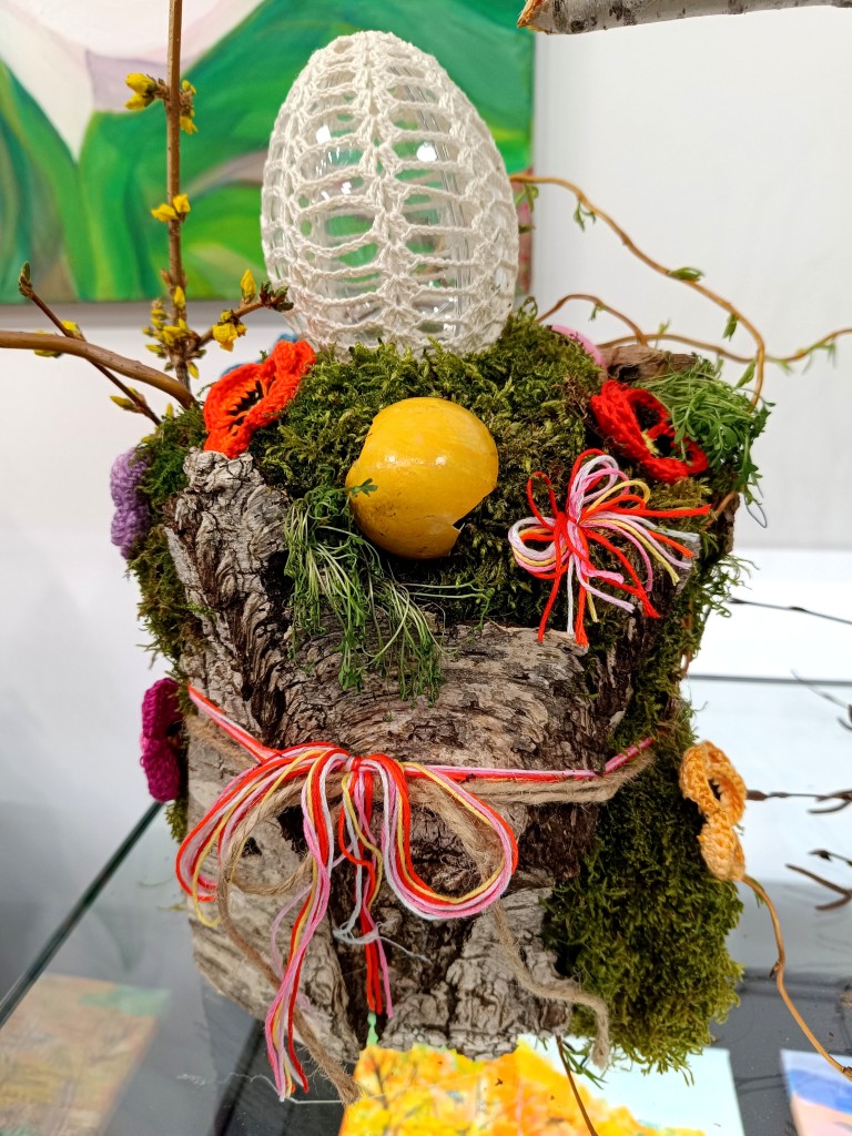 Szczególne uznanie zwróciła jedna z prac indywidualnych – wydmuszka autorstwa Agnieszki Mil z Wilkas. Ozdoba wykonana została z kory drzewnej i włóczki, z której powstały efektowne, kolorowe bratki.