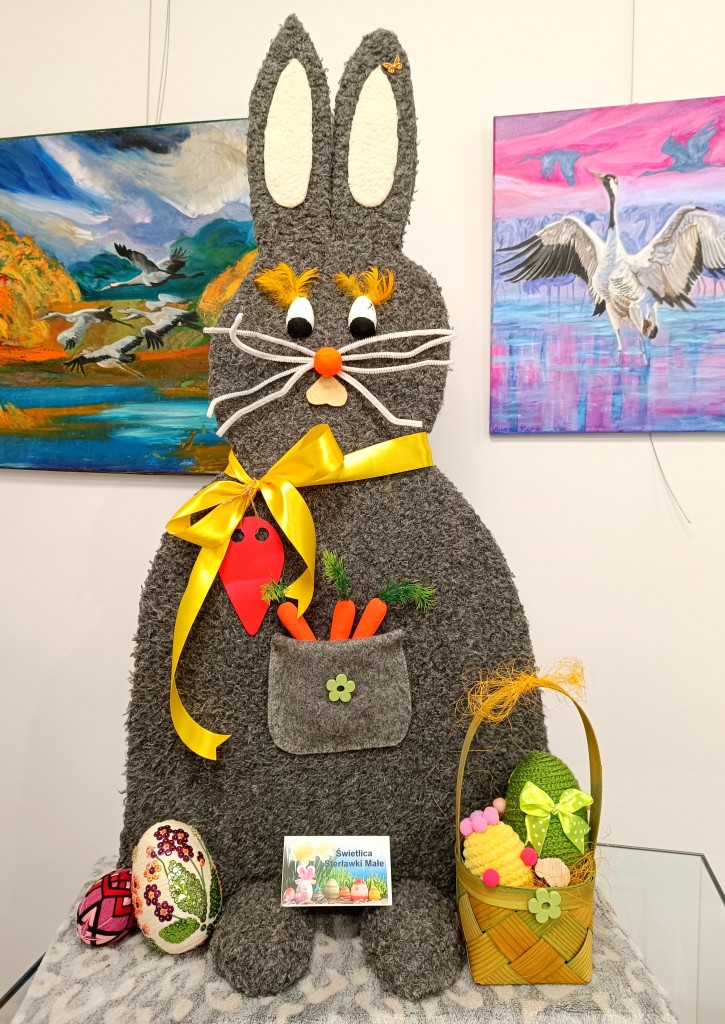 Nie zabrakło również ręcznie przygotowanych ozdób. Uczestnicy wykorzystywali m.in. bibułę marszczoną do tworzenia kwiatów, a wydmuszki zdobione były wełną, wstążkami czy elementami dekoracyjnymi. Duże zainteresowanie wzbudzały także wielkanocne zajączki – często w sporych rozmiarach – wykonane z filcu oraz siana.