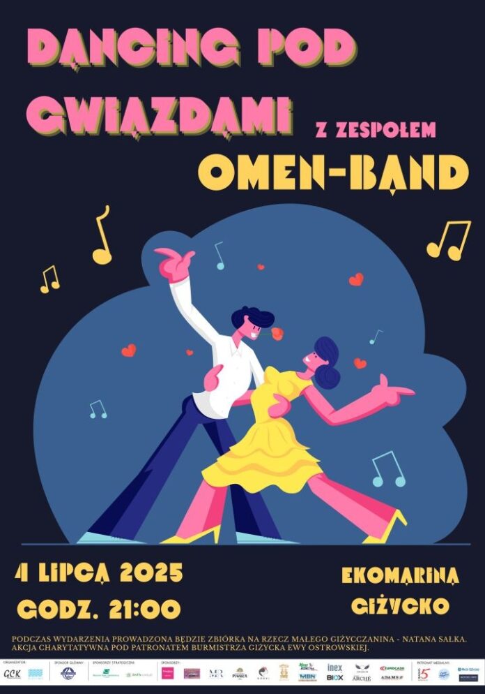 Giżyckie Centrum Kultury zaprasza mieszkańców i turystów na wyjątkowe wydarzenie plenerowe – „Dancing pod Gwiazdami”, które odbędzie się w piątek, 4 lipca 2025 roku o godzinie 21:00 na zielonym terenie przy Ekomarinie w Giżycku.
