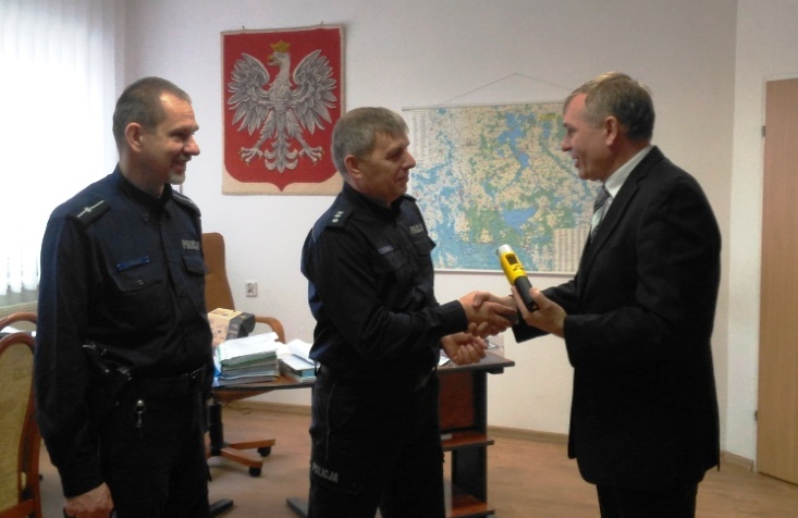 W poniedziałek, 7 stycznia Pierwszy Zastępca Komendanta Powiatowego Policji w Giżycku kom. Sławomir Ozygała oraz Kierownik Posterunku Policji w Rynie mł. asp. Krzysztof Korecki odebrali z rąk Burmistrza Miasta i Gminy Ryn Jarosława Filipek urządzenie do badania stanu trzeźwości AlcoBlow.