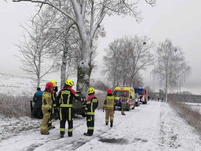 Do groźnie wyglądającego zdarzenia doszło w sobotę (25 listopada) na drodze między miejscowościami Krzyżany – Słabowo (gmina Ryn). Samochód osobowy zjechał z drogi i uderzył w drzewo.