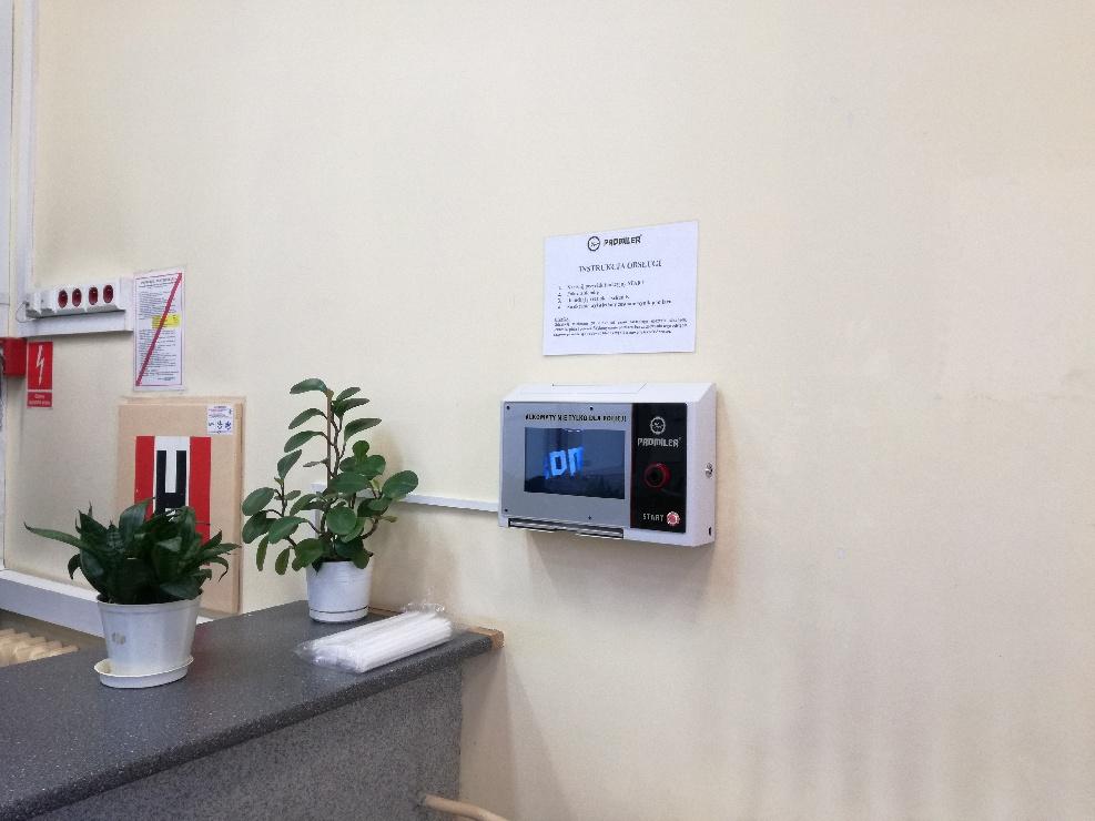Cel został osiągnięty. Urządzenie takie zostało zakupione ze środków finansowych przekazanych przez Starostwo Powiatowe w Giżycku. Znajduje się ono w budynku komendy na recepcji tak, aby każdy kto chce z niego skorzystać miał taką możliwości.