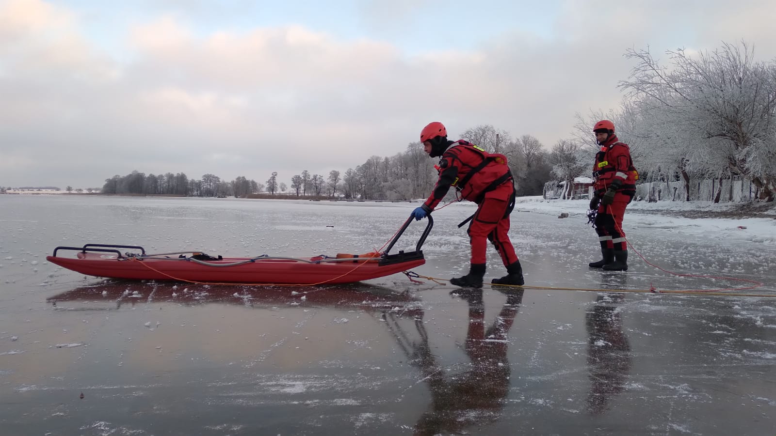 – Po dotarciu na miejsce potwierdzono zdarzenie, przy pomocy sań lodowych, ratownikom udało się bezpiecznie dotrzeć oraz ewakuować bezradne zwierzę na brzeg – przekazują strażacy z KPPSP Giżycko.