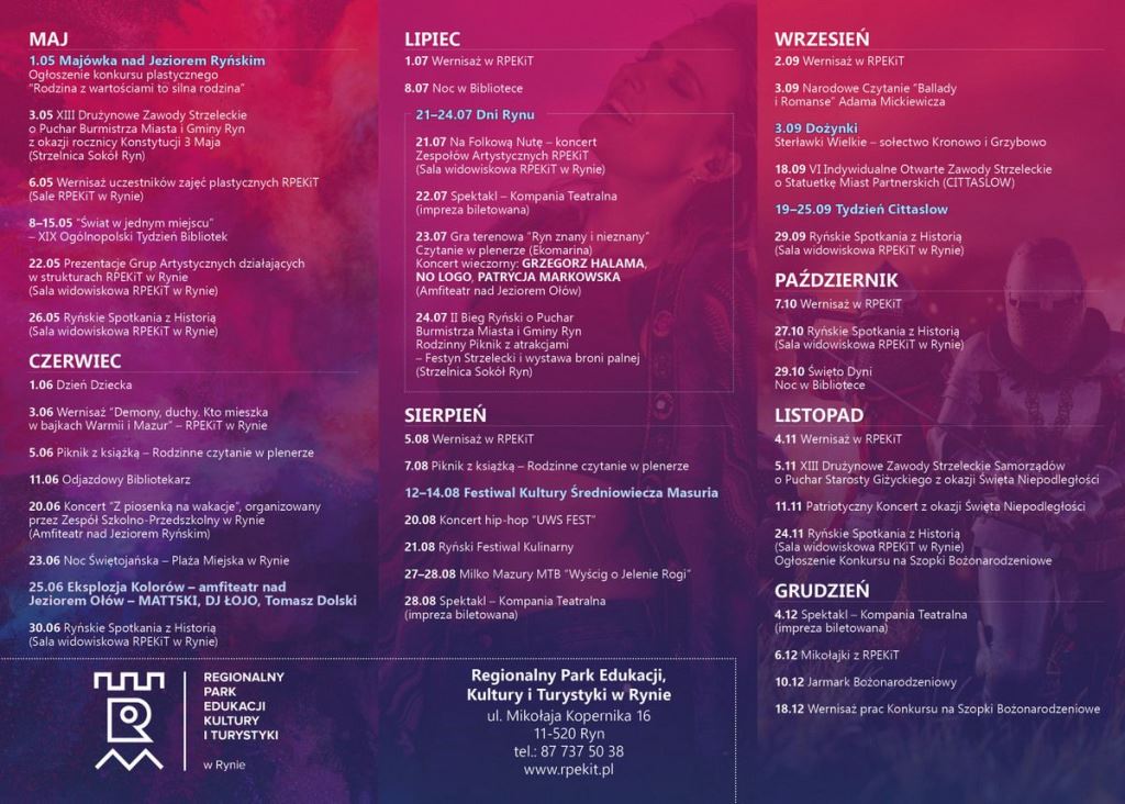 To tylko niektóre nasze wydarzenia, szczegółowy RYŃSKI KALENDARZ KULTRALNY znajdą Państwo na naszej stronie www.rpekit.pl. Serdecznie zapraszamy do Rynu!