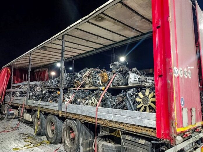 Funkcjonariusze SG sprawdzili zawartość ładunku i znaleźli podejrzany silnik wraz z zamontowaną do niego skrzynią biegów. Części pochodziły od mercedesa E350 z 2010 roku. Ponadto ujawniono skrzynię biegów, która należała do bmw z 2017 roku. Funkcjonariusze z Placówki Straży Granicznej w Bezledach ustalili, że części pochodzą z pojazdów skradzionych w latach 2023 – 2024 na terenie Wielkiej Brytanii.