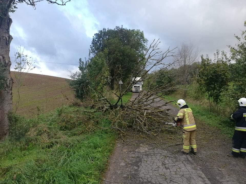 Powalone drzewa, zatarasowane drogi, zerwane linie energetyczne – w związku z intensywnymi podmuchami wiatru strażacy z powiatu giżyckiego mieli ręce pełne roboty.