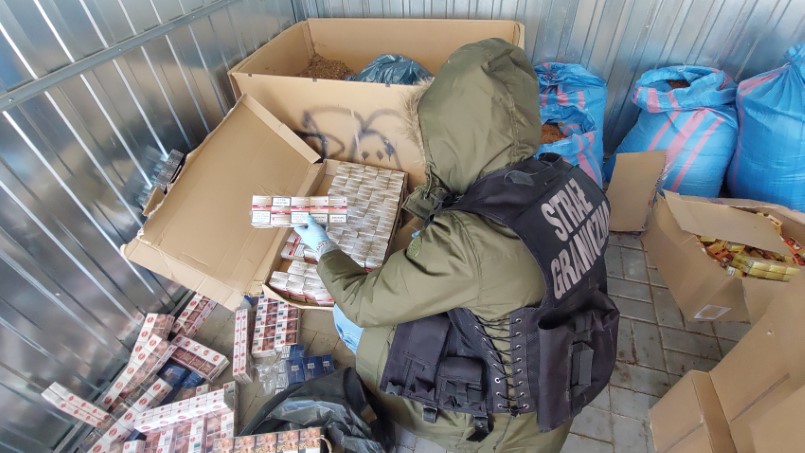 Okazało się również, że mieszkaniec powiatu kętrzyńskiego ma jeszcze magazyn z nielegalnym towarem. W blaszanym garażu przechowywał prawie 400 tys. sztuk papierosów różnych marek bez obowiązujących znaków skarbowych akcyzy oraz ponad 156 kg tytoniu.