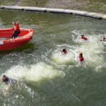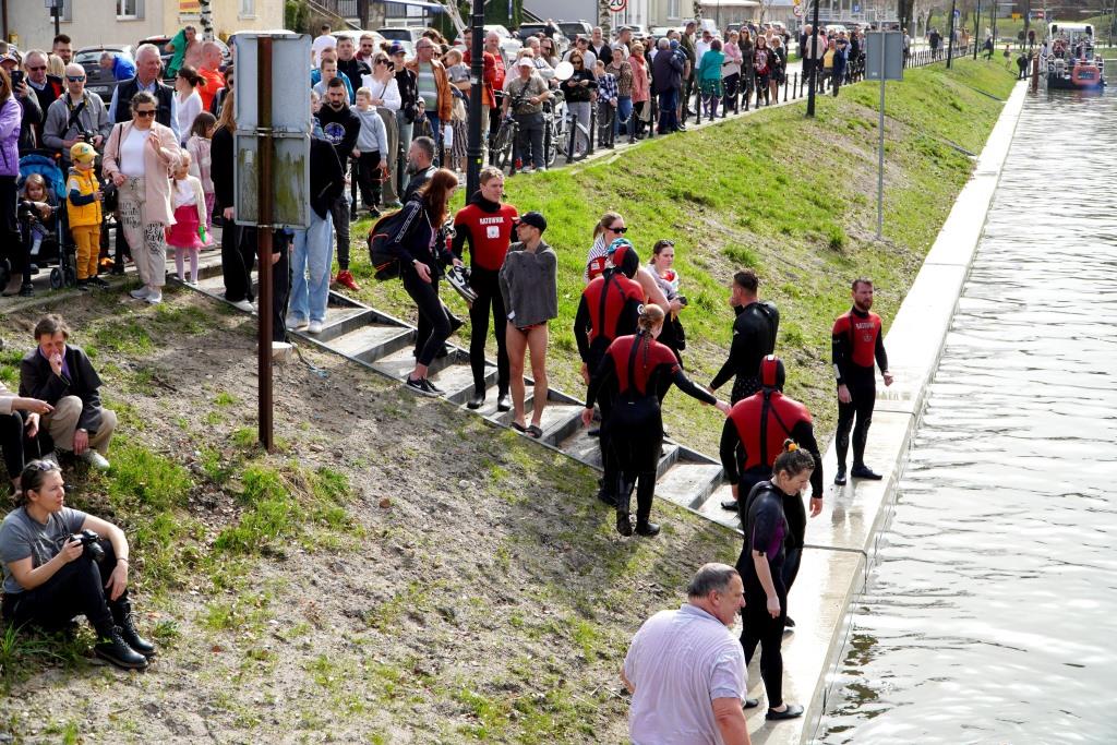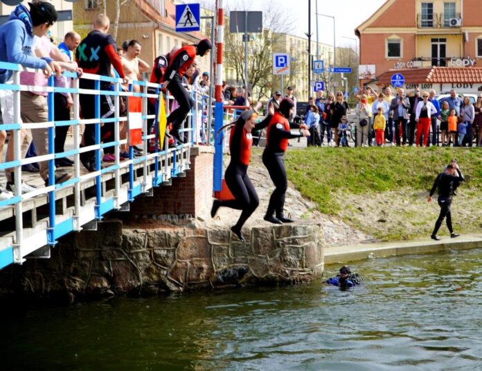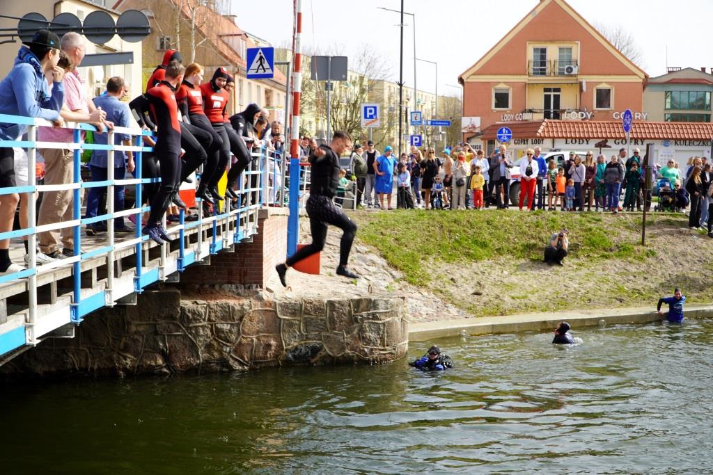 Z mostu nad kanałem Łuczyńskim do wody skakali m.in. ratownicy Mazurskiego Ochotniczego Pogotowia Ratunkowego, nurkowie i morsy z klubu „Zimny Ptak”. Popisy oglądało wielu mieszkańców Giżycka, jak i turystów.