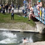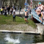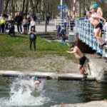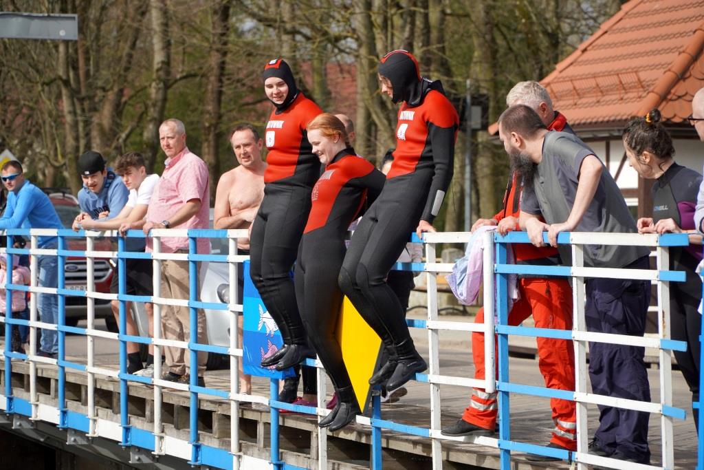 Świąteczne skoki do zimnej wody to już giżycka tradycja. Wczorajsze wydarzenie rozpoczęło się około godziny 11:00, a wśród skaczących nie brakowało pań.